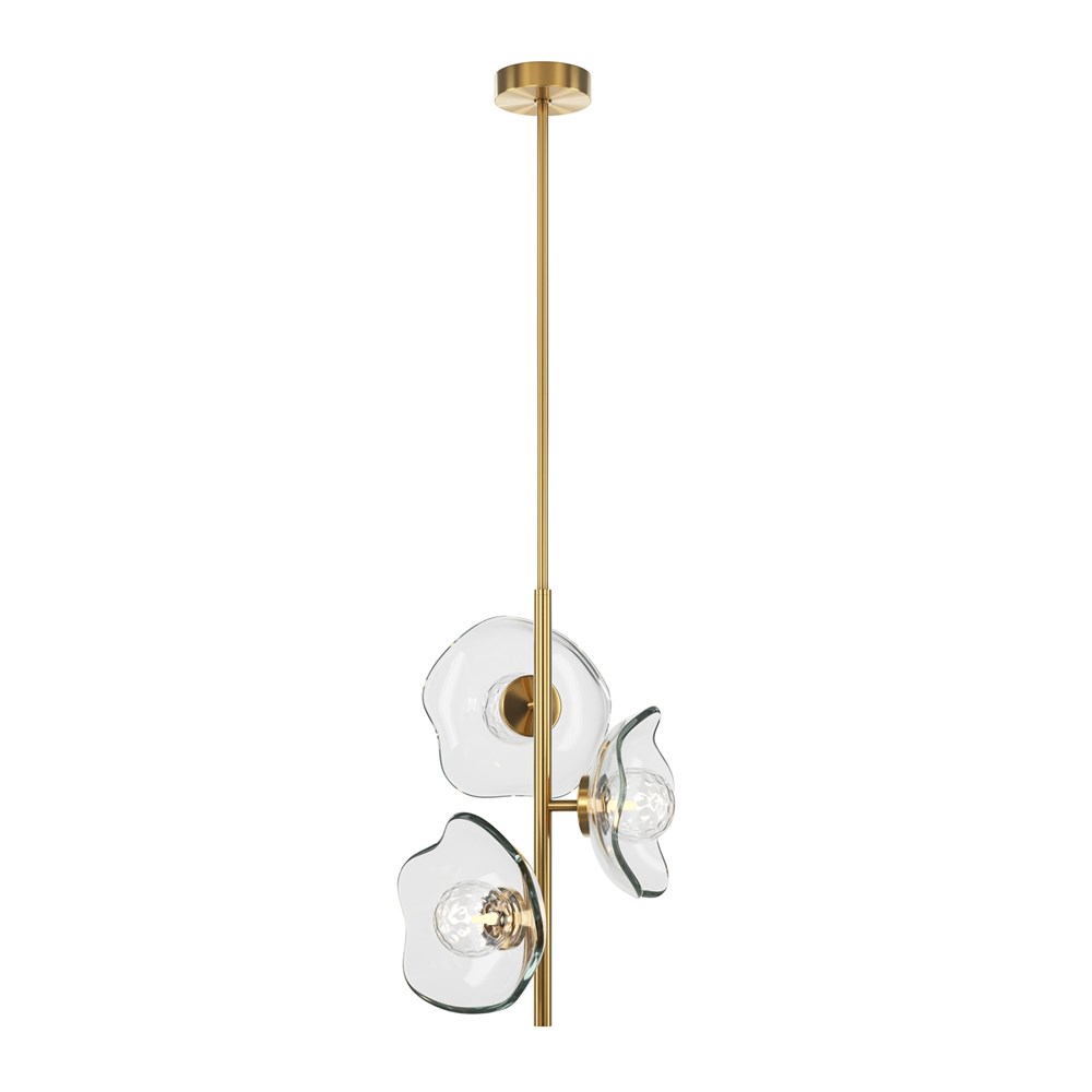 Арматура металл, цвет латунь. Плафонысоцветия из литого стекла в плавных формах. Эффектные световые блики на плавных рельефах плафона. Источник света лампа с цоколем G9.