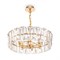 Материал арматуры – металл, оттенки – хром и золото. Декор – массивные крис таллы сложной огранки. Высота подвесных моделей регулируется длиной цепи.